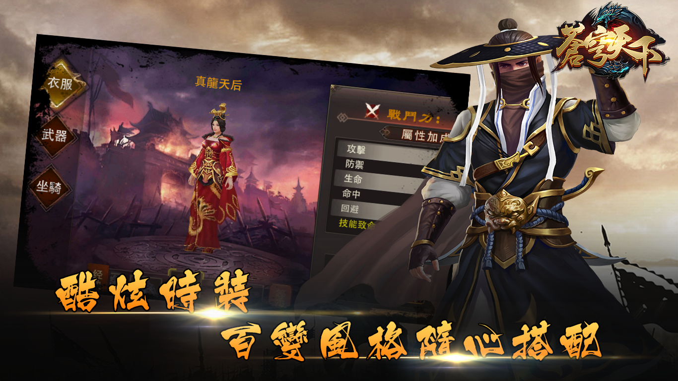 楚漢相爭,戰火紛飛,在《蒼穹天下》的世界裡,時勢造英雄,為了國家與夥伴們而戰,成就霸者之路吧!