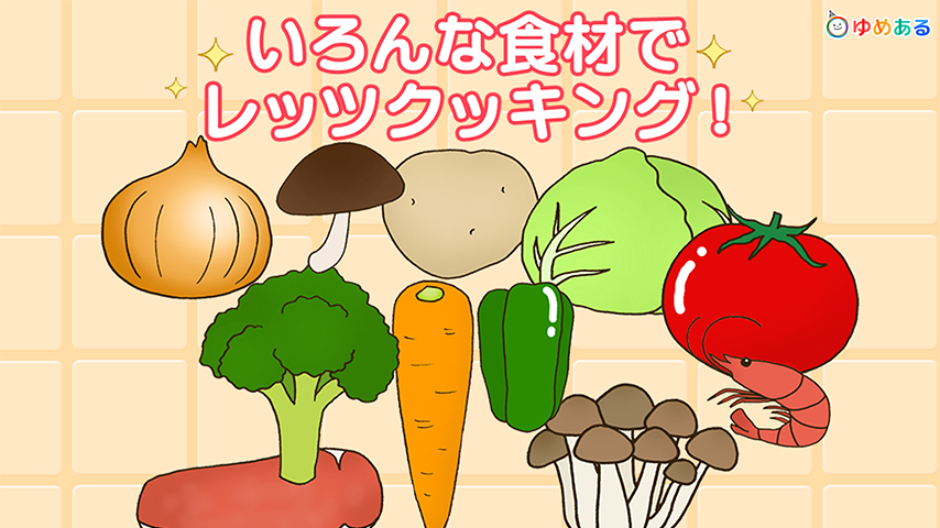 作る料理を選んだ後、食材をタップで切って作っていくアプリです。作ったあと、完成料理をタップすると「食べる」こともできるよ!親子で楽しく、料理を作ろう!