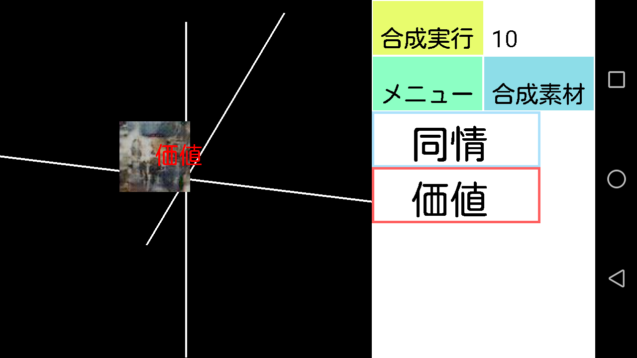 ・「言葉1」と「言葉2」の平均に一番近い「言葉」が合成後の「言葉」です。