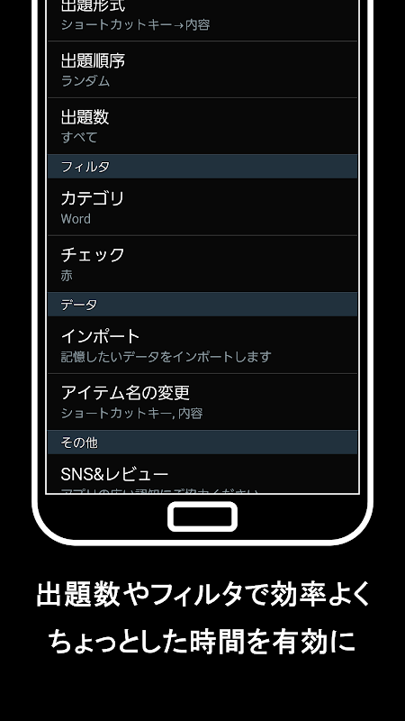 フィルタ機能があなたの記憶したい内容を効率よく出題します。