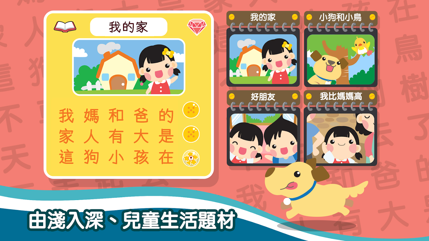 Изучение языка и письма - это этап, который должен пройти каждый ребенок. Как повысить интерес своих детей к изучению слов - это вопрос, который рассмотрит каждый родитель ... "Распознавание слов и слов" - это тот этап, который может помочь в изучении китайского иероглифа приложение для ваших детей, чтобы сделать первый шаг в обучении. С помощью метода сюжета анимационной игры, от мелкого до более глубокого, чтобы ваши дети могли с радостью узнавать персонажей и слова.