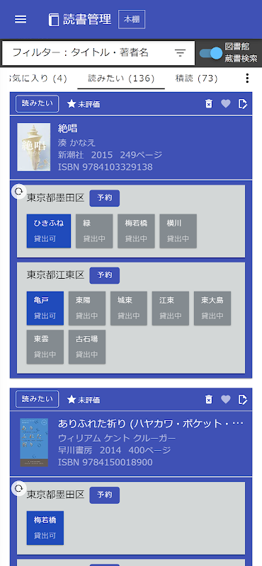 読書メモリー 図書館の蔵書検索・予約/読書記録 1.0.4