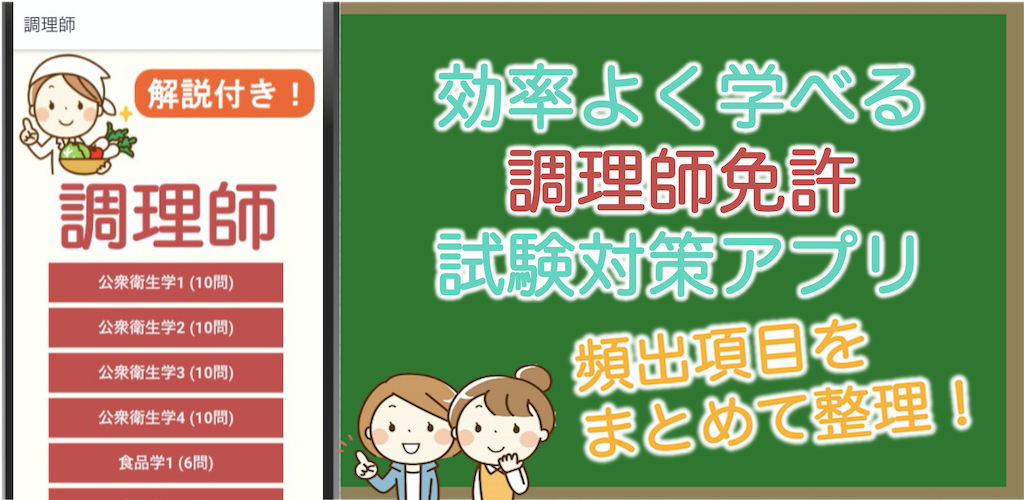 Это приложение для борьбы с кулинарной лицензией, которое позволяет вам решать прошлые вопросы в свободное время и учиться. Тщательно отобранные вопросы, которые часто встречаются на экзамене.