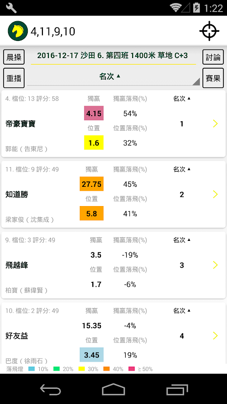 -馬匹資料顯示:透過落飛燈及排序及圖表等方式多角度展示