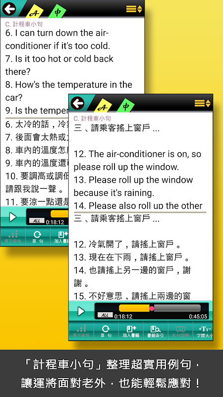 Он разработан специально для водителей такси, начиная с приема звонков клиентов, перевозки пассажиров, знакомства с живописными местами и до прибытия в пункт назначения. Практические примеры предложений и живые диалоги-симуляторы можно использовать в любое время для репетиции.Перенос иностранцев больше не будет болезненным, и его также можно использовать для национальной дипломатии!