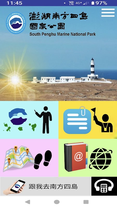О создании национального парка Четырех южных островов в Пэнху было официально объявлено 8 июня 2014 года. Это девятый национальный парк на Тайване, включающий острова Дунцзи, Сицзи, Дунъюй Пинъюй и Сиюй Пинъюй, известные под общим названием «Четыре южных острова» и прилегающие к ним территории. прилегающие острова и рифы. Это мобильное приложение собирает информацию об открытости национальных парков и предоставляет услуги мобильных гидов, таких как естественная экология, геологические ландшафты или культурные и исторические объекты, чтобы помочь туристам познакомиться с богатой и разнообразной экологической средой четырех южных островов.