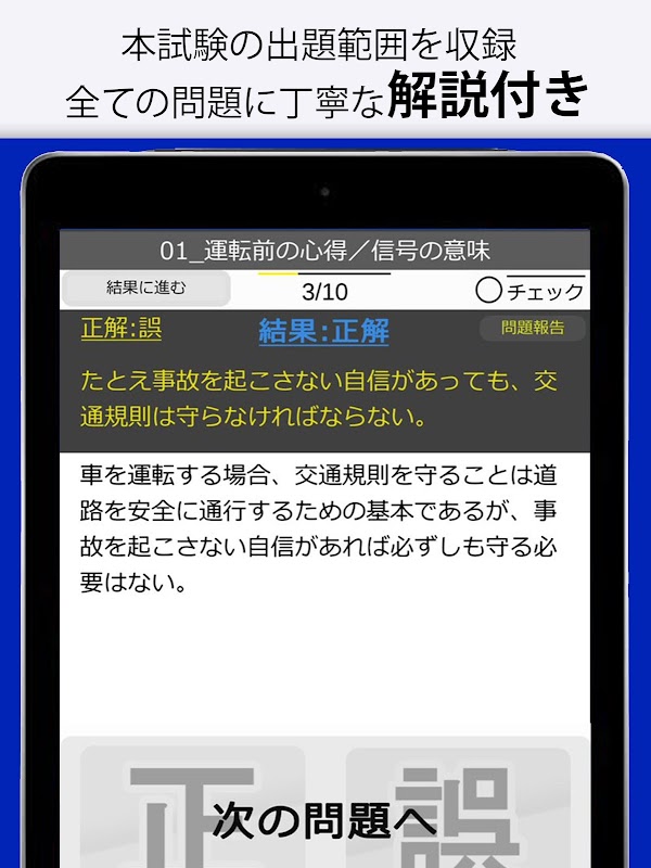 すきま時間に暇つぶし感覚で学べる車の学科試験の問題集アプリです!