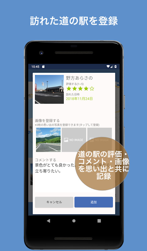 ・訪れた道の駅を評価・コメント・画像と共に登録