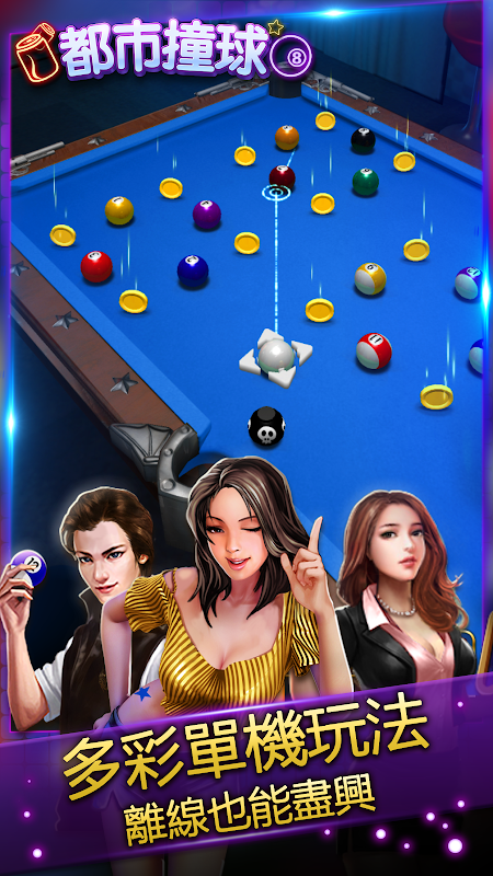 『超級單機』 豐富的離線遊戲模式。終於,在沒有網路的時候也可以一個人靜靜的享受撞球遊戲的快樂了。