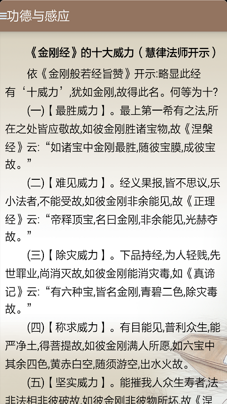 3、软件内容包含金刚经译文、法师问答、功德感应等辅助学习内容;