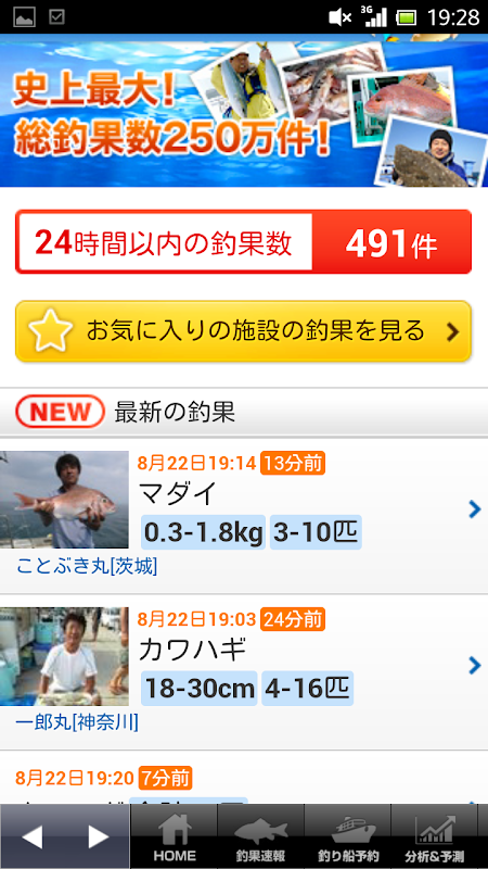 総釣果数は250万件以上!24時間リアルタイム更新の釣果速報は写真も豊富でまさに圧巻です。