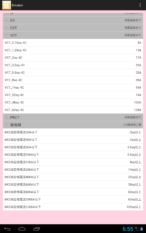Информация 電線許容電流・ブレーカー・接触器・開閉器選定:Breaker APK