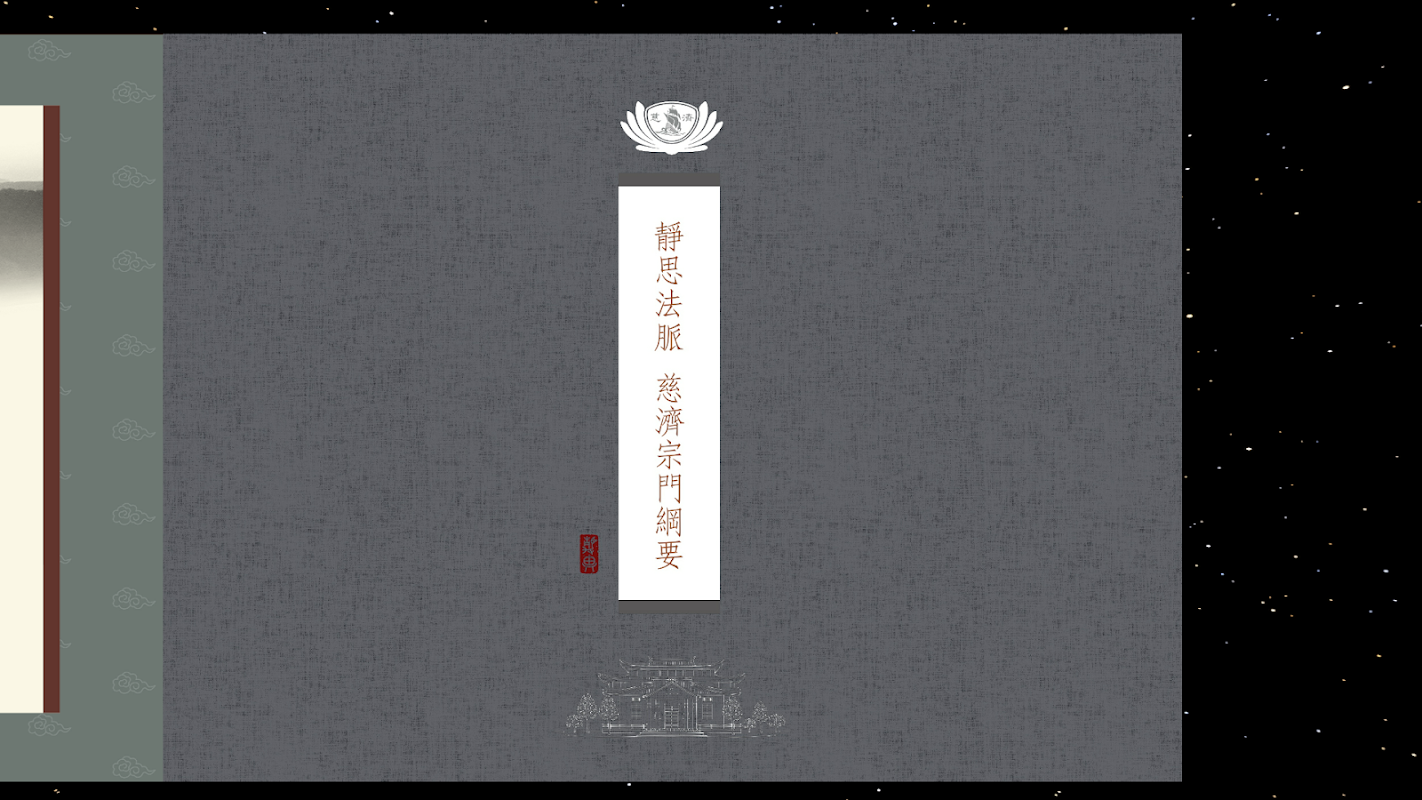 「靜思法脈慈濟宗門綱要」,是證嚴上人與靜思弟子,從初發心共同邁向慈濟第54年的艱辛歷程。每一則綱要都可開展出時代的脈絡,見證慈濟人入人群行菩薩道的心地風光。