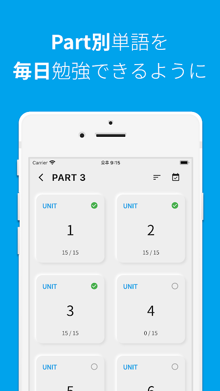 Изучение слов – это повторение! Вы можете просмотреть изучаемый вами корейский TOPIK по ЧАСТИ, ЕДИНИЦЕ и всем словам.