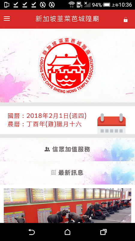 - 线上信众加值服务、点灯安太岁服务 - 线上法会、祭典、制解仪式报名 - 最新资讯、庆典讯息 - 即时资讯推播、庙信即时通 - 同步显示FB粉丝团动态及相簿