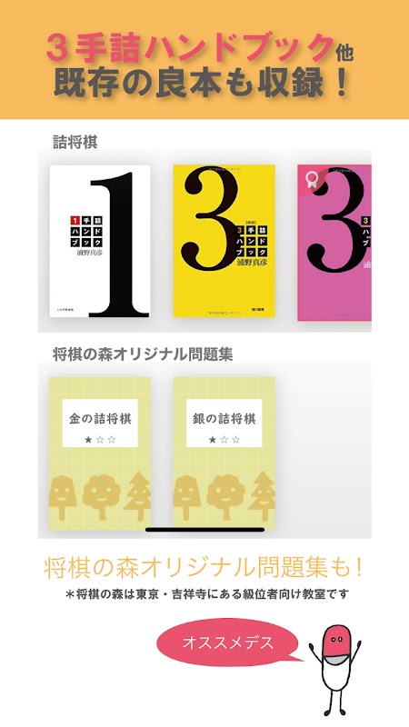 Цумэ сёги и тэсудзи приложение для практики, чтобы укрепить сёги. Включает в себя множество существующих хороших вопросов и оригинальные вопросы, такие как «3 Справочник». С помощью функции Phase Note вы можете записывать проблемы и пробовать их снова и снова!