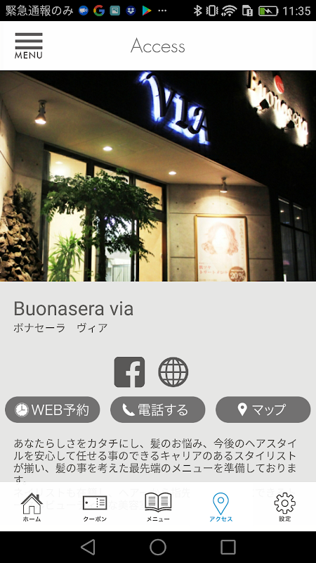 店舗のマップが表示され、地図アプリとも連携しているので、初めてのご来店の時も簡単に見つけることができます。