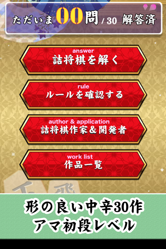 全て解けたら、スマホ詰将棋初段以上を認定します。