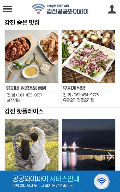 강진에 있는 와이파이도 한번에 잡고, 강진 관광정보도 한번에 볼 수 있습니다.