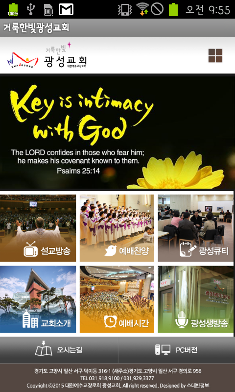 Церковь Holy Light Gwangseong находится в Ильсане, Gyeonggi-do, и принадлежит пресвитерианской церкви объединенной конфессии Кореи, которой управляет пастор Seung-hyeon Kwak.