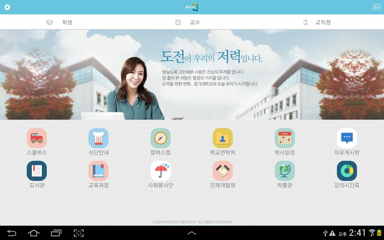 [ 경기대학교 공식 어플리케이션 ] 대학도우미, 모바일학생증, 학사/행정 관련 서비스, 도서관, 인재개발원, 박물관 관련 일부 서비스