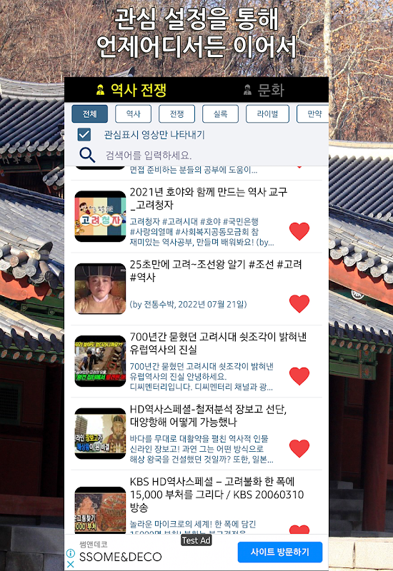 그 밖에 전쟁사, 민담, 전설, 생활상 에 에 대해서 도 자세히 나와 각각 의 영상 을 보며 재미 와 을 동시 에 챙겨 보세요 ~!