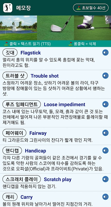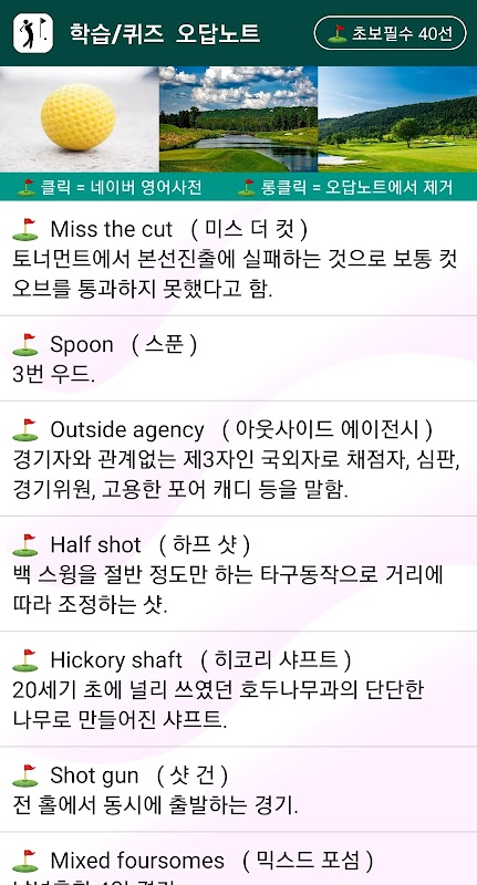 ■ Это приложение с объяснением терминов, связанных с гольфом, необходимо тем, кто изучает гольф или любит гольф.