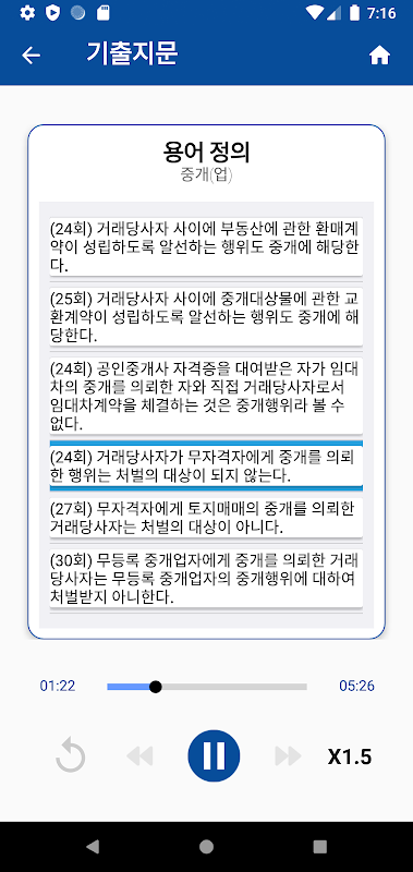 Информация 공인중개사 시험의 기출지문 개념완성(중개사법)-기지개 APK