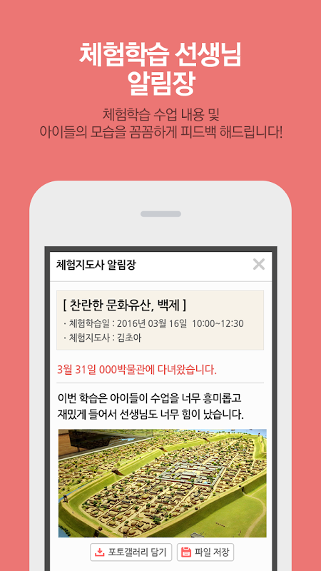 - 체험학습 수업 내용 및 아이들의 모습을 꼼꼼하게 알림장으로 피드백 해드립니다!
