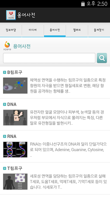 4. 멀티미디어 건강정보: 인체기관, 질병의 메커니즘 등 설명이 어려운 정보를 2D와 3D로 쉽게 제공합니다.