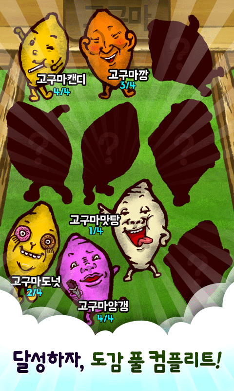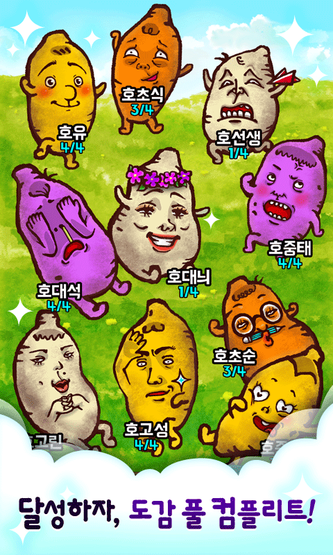 따끈따끈 귀여운 군고구마!껍질 속에 어떤 표정이 숨어있을까?신개념 육성 게임의 완성!5가지 마을의 군고구마 친구들을 모아보자!