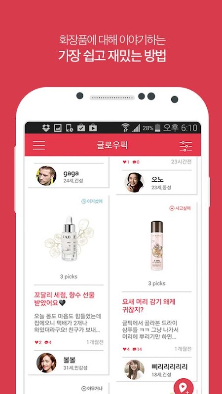 글로우미가 2014년 8월 26일 글로우픽으로 새롭게 출시되었습니다. 구글플레이에서 '글로우픽'을 검색해서 글로우데이즈의 새로운 화장품 검색 서비스를 경험해보세요. 세상 모든 화장품을 모바일로 가장 간편하게 검색할 수 있는 화장품 검색 신세계, 글로우픽이 여러분의 뷰티라이프를 보다 빛나게 만들어 드립니다!