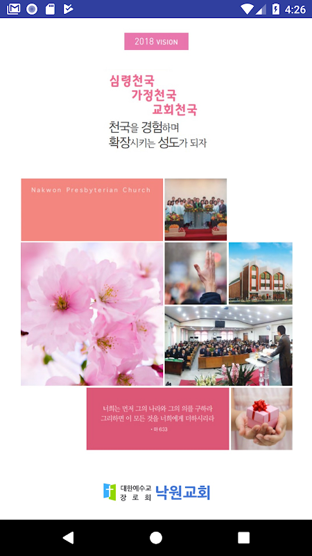 낙원교회 소개, 설교&성가대 찬양 듣기, 주일학교 게시판 등의 컨텐츠를 이용하실 수 있으며