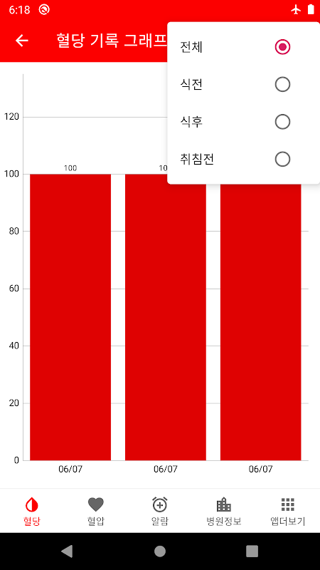 - 식전, 식후, 취침전 구분으로 기록할수 있습니다.