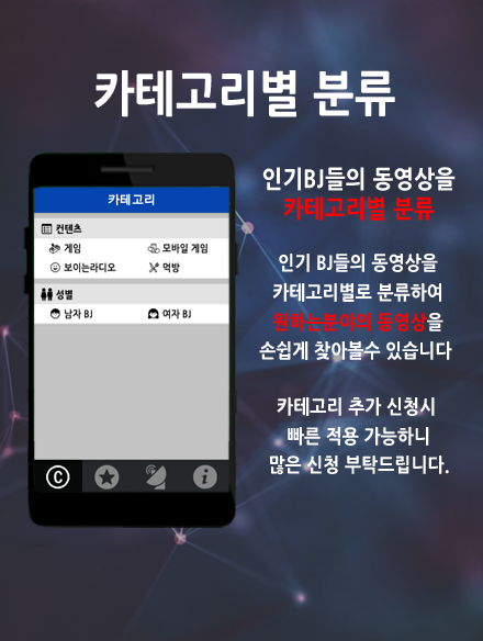 이제는 카테고리별로 모여있는 '내 손안에 아프리카BJ'에서 한번에 보세요!