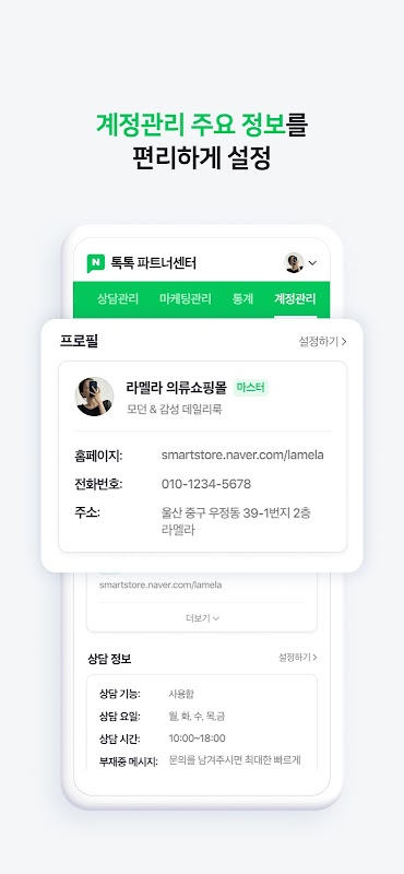 - Вы можете легко управлять такими страницами, как консультации, маркетинг и статистика, на основе учетной записи.