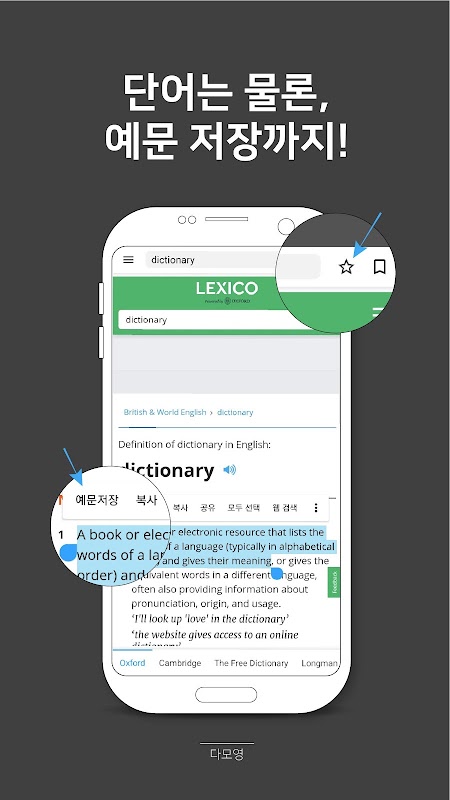 1) «Мой словарь», который сохраняет слова и примеры, которые вы хотите в закладки