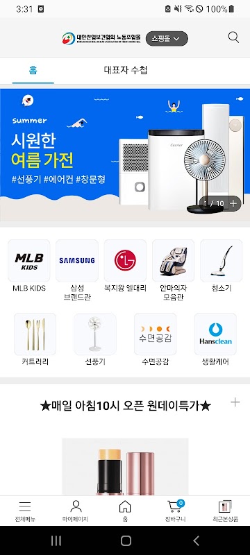 특가 상품 판매 및 제휴서비스를 제공하는 '대한산업보건협회 노동조합몰'입니다.