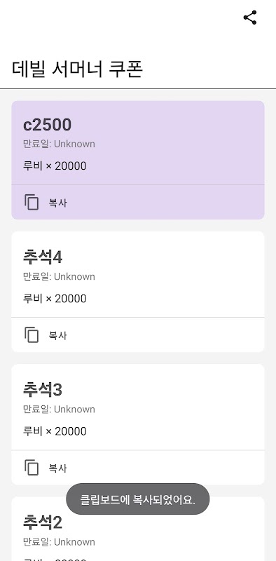Скопированный купон меняет цвет.
