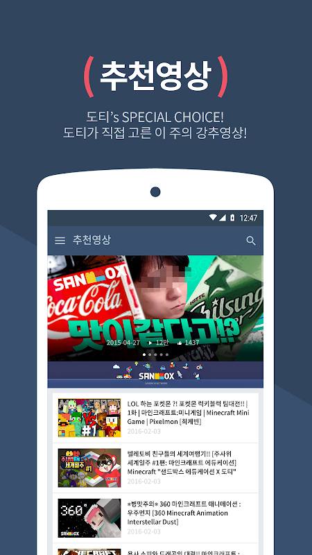 - 도티가 직접 고른 추천영상으로 취향 저격!