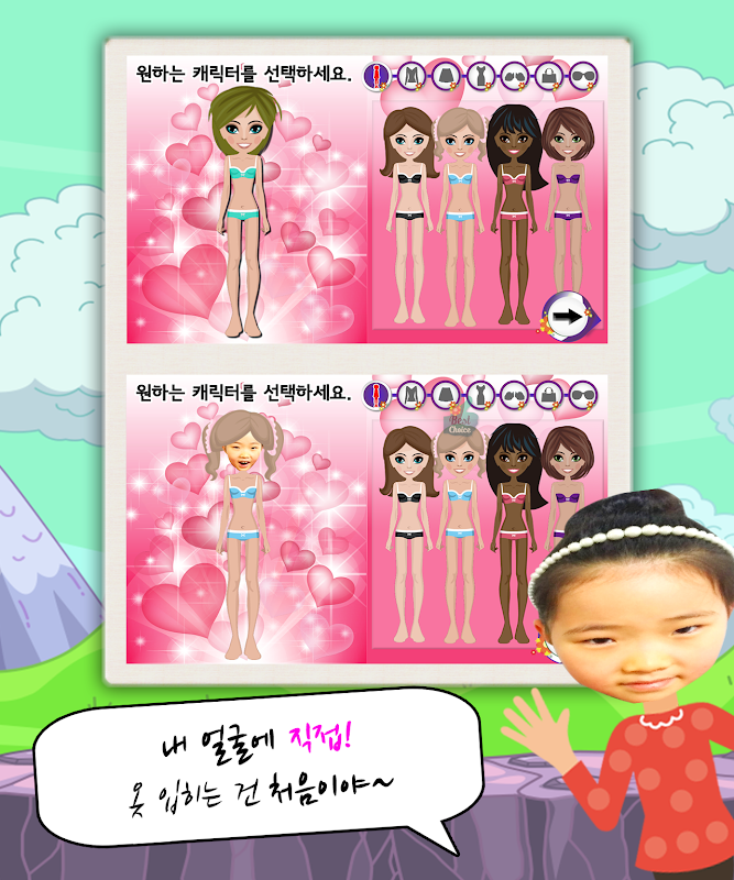 공주같이 예쁜 우리아이 얼굴을 바탕으로 예쁜 옷을 입히고, 다양한 악세사리도 코디하는 콘텐츠!