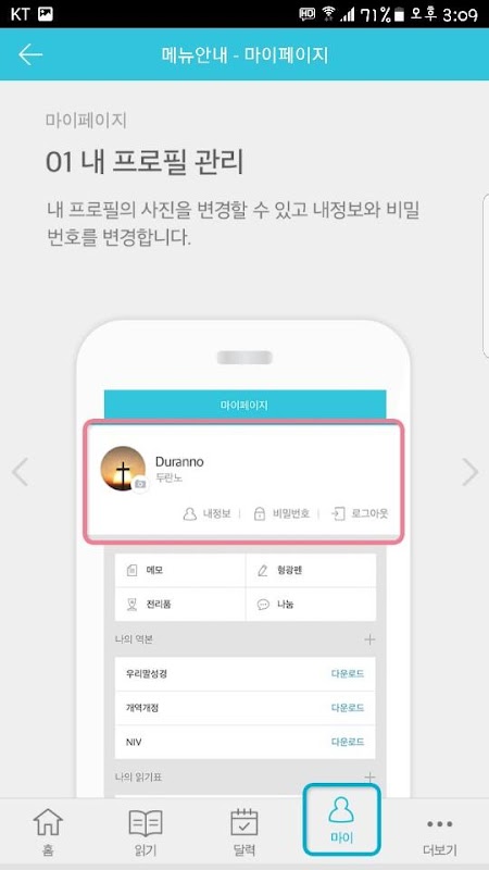 Приложение Duranno Vision для чтения