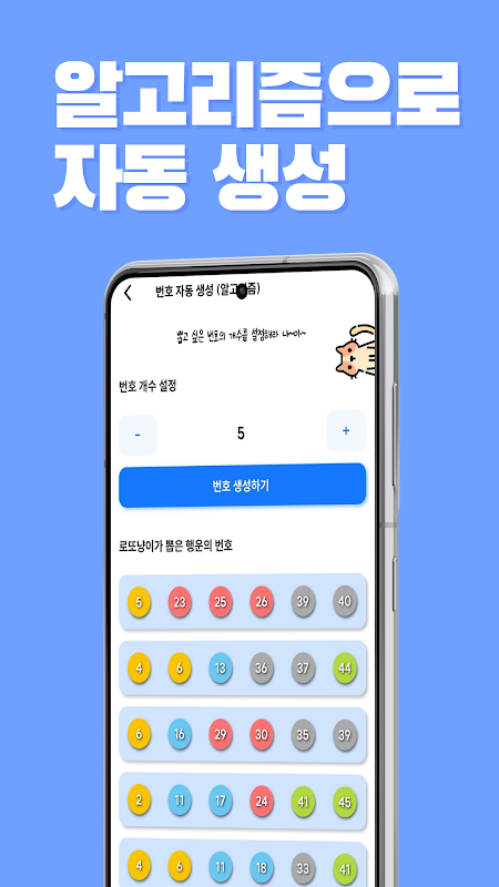 Oписание 로또 냥이 - QR코드, 알고리즘 번호 자동 생성