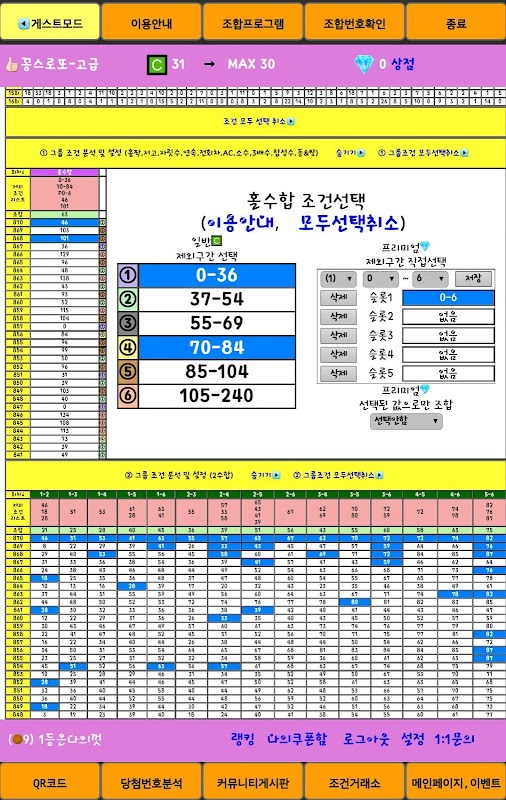 국내최초 유일한 모든 숫자합 조건 분석 및 조합설정 79가지 조건설정조합QR코드스캔, 모든 경우의수를 분석한 다양한 로또 분석자료 제공