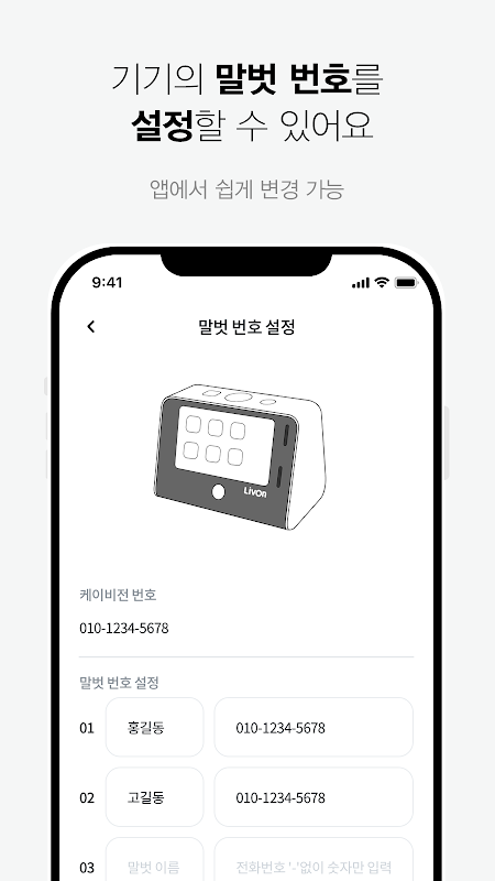 24시간 비상호출 서비스 : 위급한 상황에서 응급호출기의 버튼을 누르면 지정된 보호자에게 자동으로 전화를 걸어 응급상황 시 구조를 요청하실 수 있습니다.