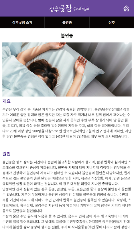 건조된 상추(Lactica sativa L.), 복령(Poria cocos) 및 로즈마리(Rosemarinus officinalis)의 혼합 추출물을 포함하는 숙면 유도 조성물 및 이의 제조 방법에 관한 특허로 생산된 상추굿잠은 상추 지상부의 건조 분말, 소나무에 기생하는 외생균체인 복령 및 로즈마리 잎 분말의 혼합물을 열수로 추출하여 숙면 유도 효과가 우수하면서도 관능성이 우수한 숙면 유도 조성물 입니다. 본 제품의 숙면 유도 조성물은 우수한 숙면 유도 효과는 물론, 관능성, 혈액순환 개선활성, 항산화 활성이 우수하여, 수면장애의 개선효과가 탁월하며, 동시에, 인간 적혈구에 대한 용혈 활성을 전혀 나타내지 않고, 열 안정성이 우수하여 숙면 유도용 약학 조성물과 건강 기능 식품으로 사용할 수 있을 것으로 기대되며, 상기 조성물은 추출액, 분말, 환, 정 등의 다양한 형태로 가공되어 상시 복용이 가능한 형태로 조제할 수 있는 발명입니다.