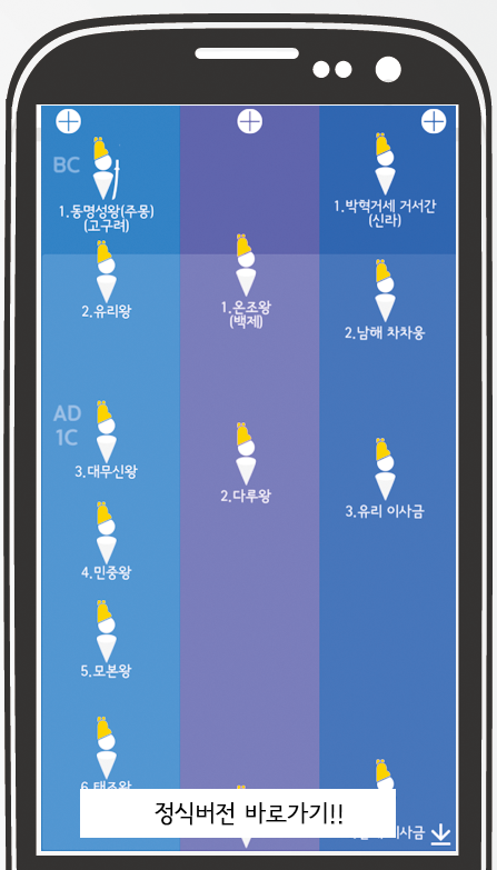 ★★맛보기 버전에는 각국 초기 왕들만 보입니다.