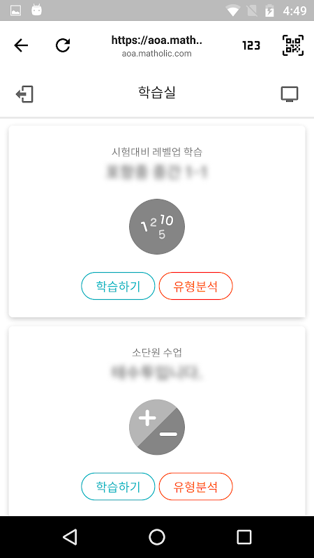 간단히 QR코드 인식, 학습번호 입력을 통한 답안제출을 할 수 있습니다.