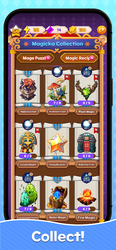 Тсс! Коллекция магии обязательна для любого начинающего мага! Собирайте коллекции, чтобы узнать неизвестные истории магов и исследовать секретный мир магов с помощью коллекционных предметов. А самое лучшее — за это вы получаете награды!