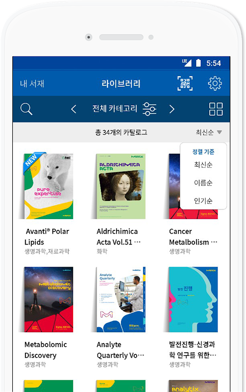 머크 생명과학 비즈니스의 다양한 자료들을 이제 더욱 편리하게 받아보실 수 있습니다. 씨그마 알드리치에서 정기적으로 발행되었던 뉴스레터들과 머크의 새로운 제품들이 담긴 카탈로그, 각종 기술 자료 및 어플리케이션이 수록된 가이드북까지 하나의 앱에서 통합 구독 및 관리할 수 있습니다.